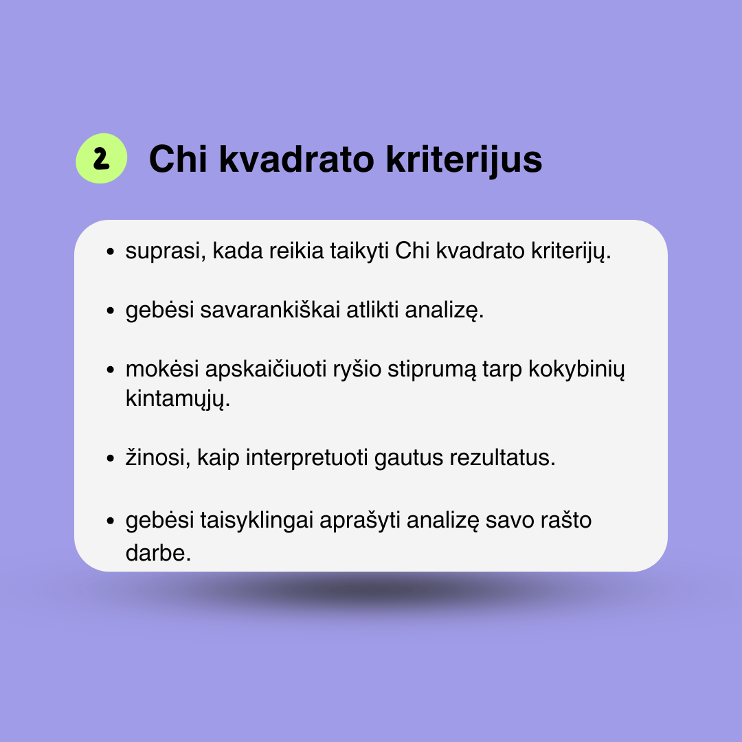 - suprasi, kada reikia taikyti Chi kvadrato kriterijų;